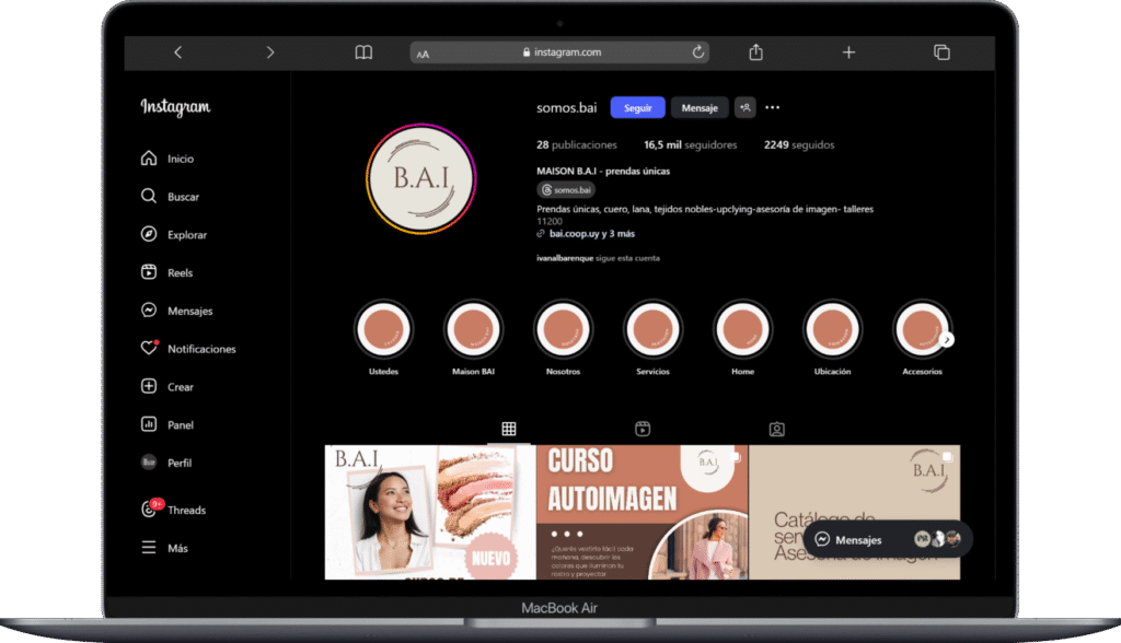 Desde Cíclope, acompañamos a B.A.I en la gestión de sus redes y campañas digitales, con foco en el lanzamiento de colecciones y experiencias en Maison. Nuestro objetivo es dar visibilidad, generar comunidad y potenciar la conexión con quienes buscan moda con propósito.